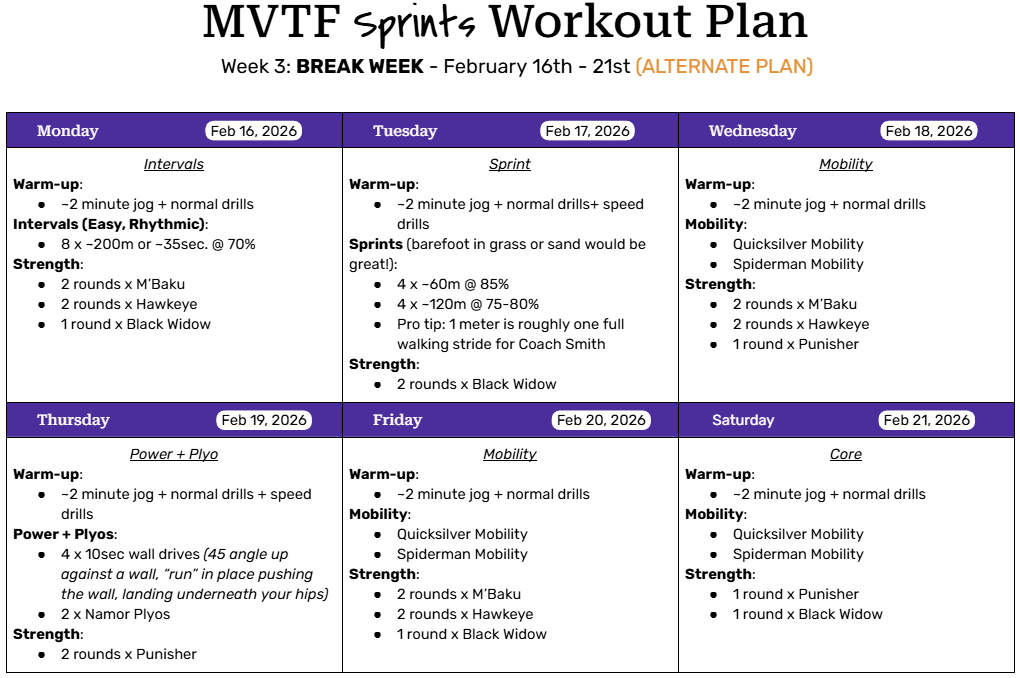 Click the link below to see all of our Strength, Mobility, and Plyo exercises. These are inclusive of our no-weight-room-alternate exercises!