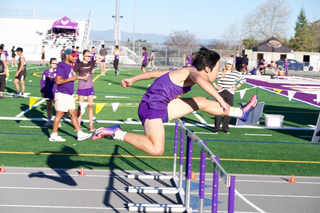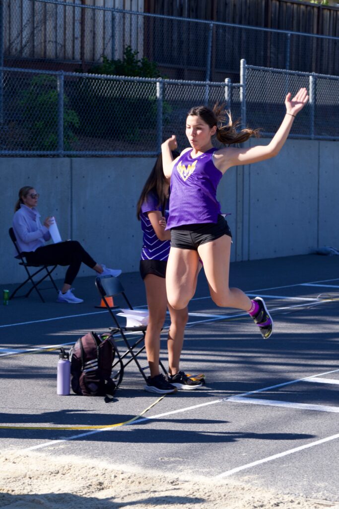 Miranda Hsu and Naomi Hsu both battled it out for a 1-2 sisterly finish in the varsity girls 1600m. The Hsu’s came back in the 800m to place 2-3 with Suhani Pahuja earning 1st place. M. Hsu said “why not” and jumped in the 300m hurdles to earn a 3rd place, with Sophia Yamada getting barely edged out by the Wilcox hurdler for 2nd place. In the varsity girls 3200m, Mel Zhao earn a 2nd place finish in a field of all sophomores. Gillie Ross dominated in the varsity girls’ field with 10 points coming from wins in both the shot put and discus throw. Allie Rummelhoff cleaned up nicely with a pair of 2nd place finishes in the shot put and discus throw. Meyra Olcay rounded out the discus throw sweep with a 3rd place finish. Lauren Moore leaped to 3rd place in the long jump and a win in the triple jump followed by a 2nd place triple jump finish from Jasmine Zhao. Great job varsity ladies!